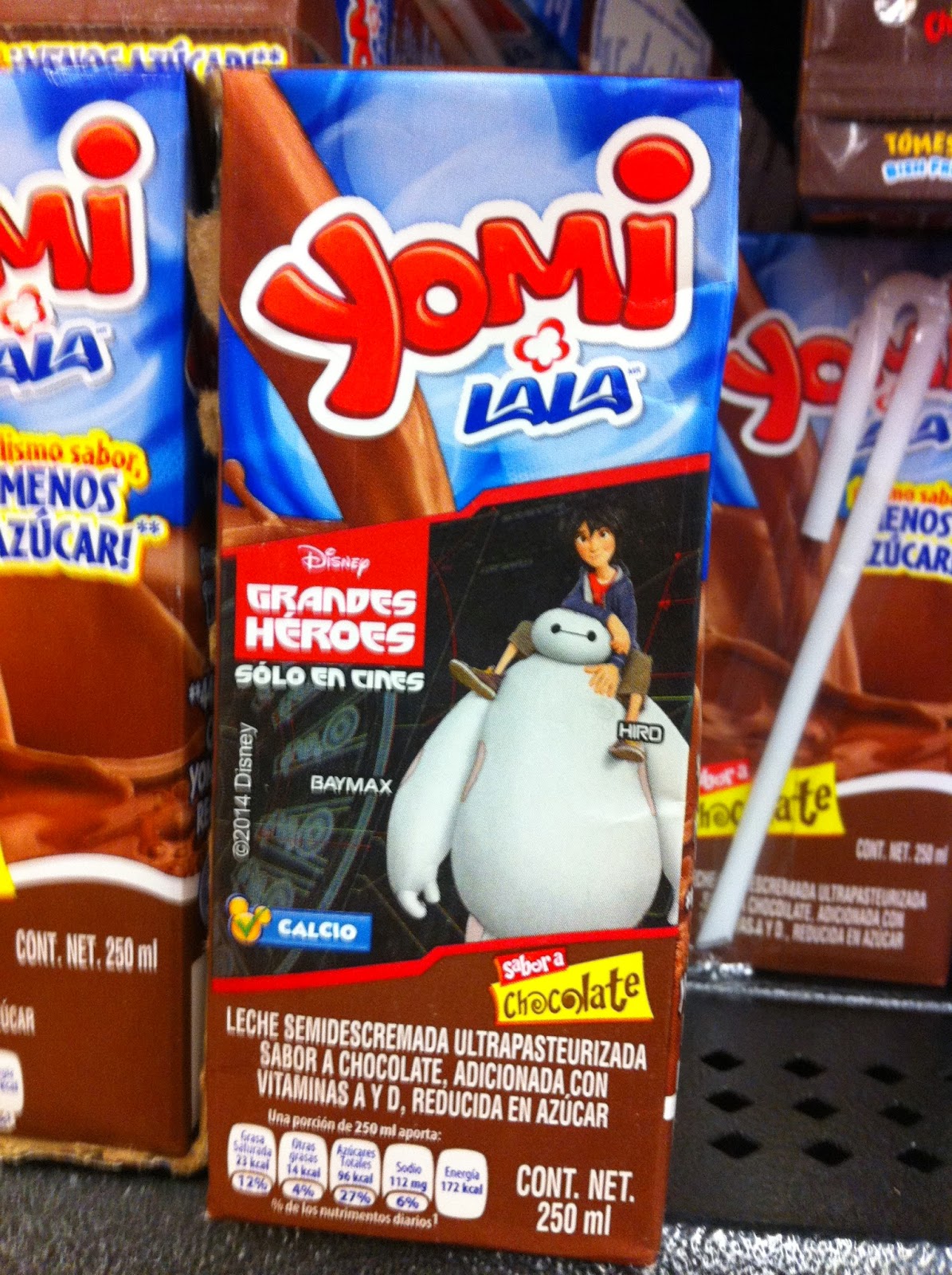 La marca Alpura, ostenta desde el 4Q del 2014 la imagen de Mi villano favorito (los Minions) en su versión navideña, mientras que Hersheys acompaña sus productos con la imagen de Plants vs Zombies, ambas puestas en los empaques a través de Tycoon, la agencia de representación de ambas propiedades para México; y finalmente la marca Yomi de Lala tiene en sus empaques a Baymax y Hiro de la película de Disney Big Hero 6 que ellos mismos comercializan a través de su filial Disney Consumer Products México.