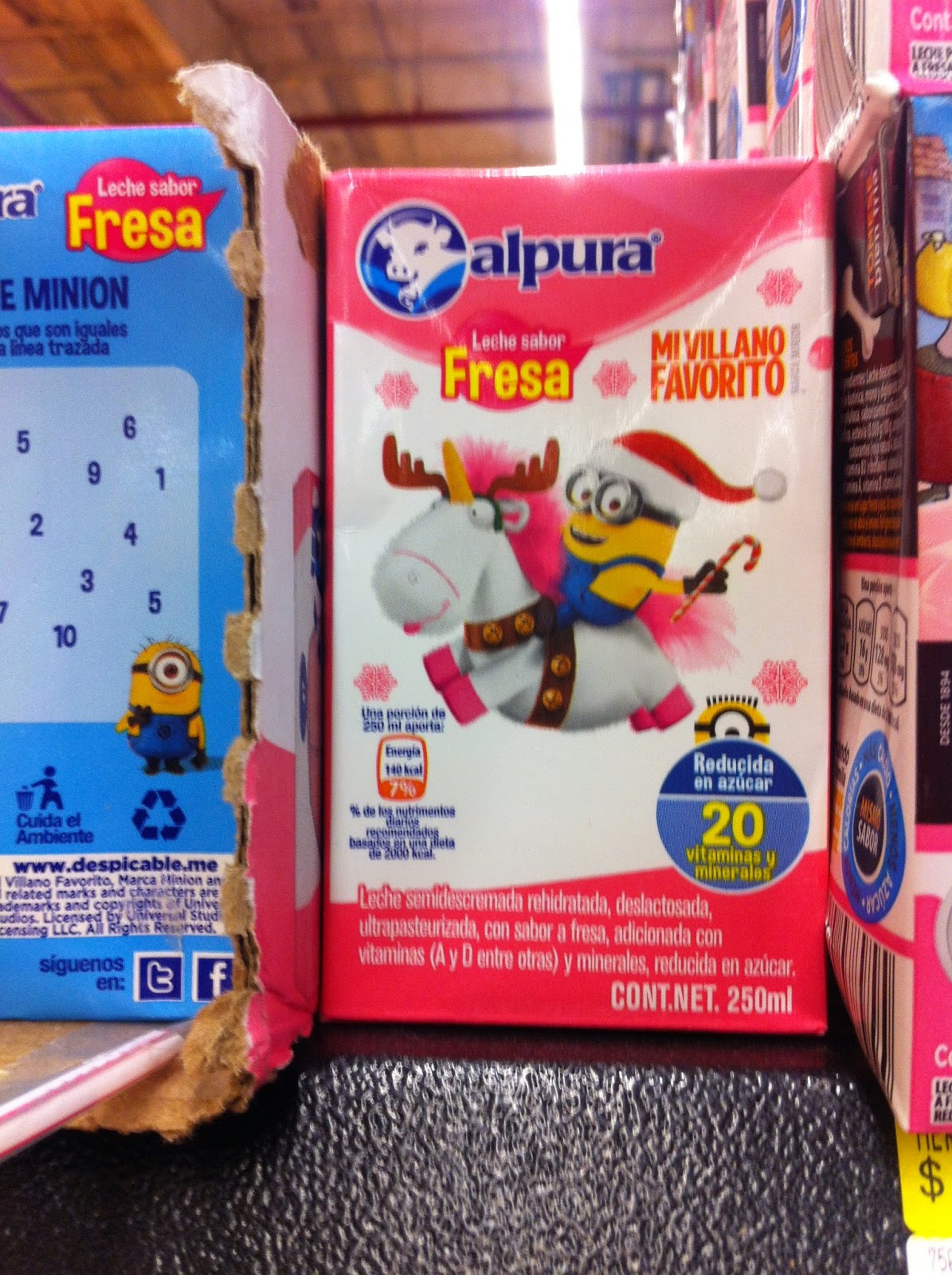 En uno de los habituales recorridos que se hacen en los pasillos de Walmart, me di cuenta que en el área de las leches saborizadas, la guerra entre las marcas en los anaqueles se da con diferentes propiedades infantiles.